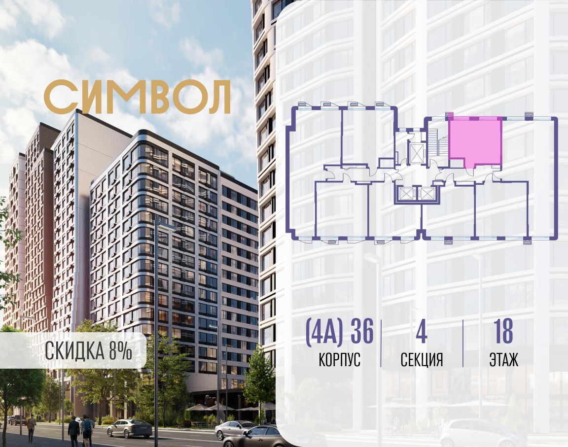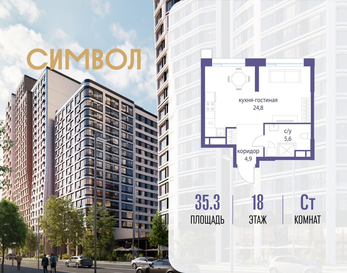 Продается квартира-студия от застройщика: общая площадь 35.30 м², жилая 10.00 м², кухня 14.80 м², 18-й этаж, жилой квартал "Гордость", корпус 36 (секция 4). Срок сдачи: 2 квартал 2029 года.