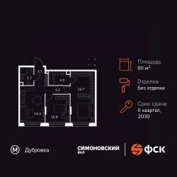 Продаётся 2-к квартира номер 199 общей площадью 60 кв.м. на 18-м этаже 27 этажного здания. Без отделки. Цена с учётом скидки.