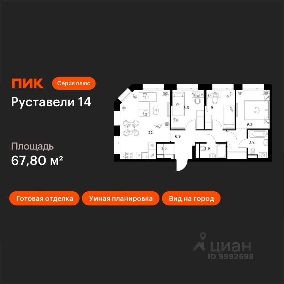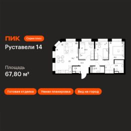 Продаётся 3-комн. квартира площадью 67,8 кв.м на 10 этаже 21 этажного дома (Корпус 3.7, Секция 3) проекта ПИК Руставели 14. Светлый просторный подъезд на уровне земли, функциональная планировка, большие окна, c отделкой.