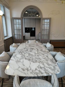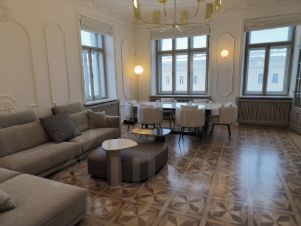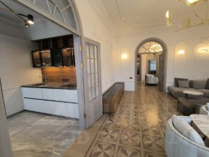 В квартире выполнен свежий ремонт в классическом стиле с использованием качественных материалов. Высокие потолки-3.5 метра. Полностью меблированная совершенно новой итальянской мебелью самых высоких марок, включая люстры, бра и торшеры, оборудование кухни полный фарш новейшими моделями фирмы Miele, и др.