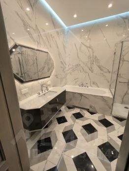 В комнатах цветной паркет из ценных пород дерева, в остальных помещениях мраморная плитка, в санузле мозаичная. Стены и потолки с гипсовой лепниной. Высокие дубовые арочные двери со стеклом, входные двери двустворчатые бронированные с тамбуром. Видеофон с улицы и площадки, охранная сигнализация. 4 кондиционера MITSUBISHI ELECTRIC.