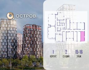 Продаётся квартира от застройщика: общая площадь 28.00 м², жилая 14.00 м², кухня 5.00 м², 16-й этаж, жилой квартал "Остров 14", корпус 1 (секция 2). Срок сдачи: 2 квартал 2029 года.