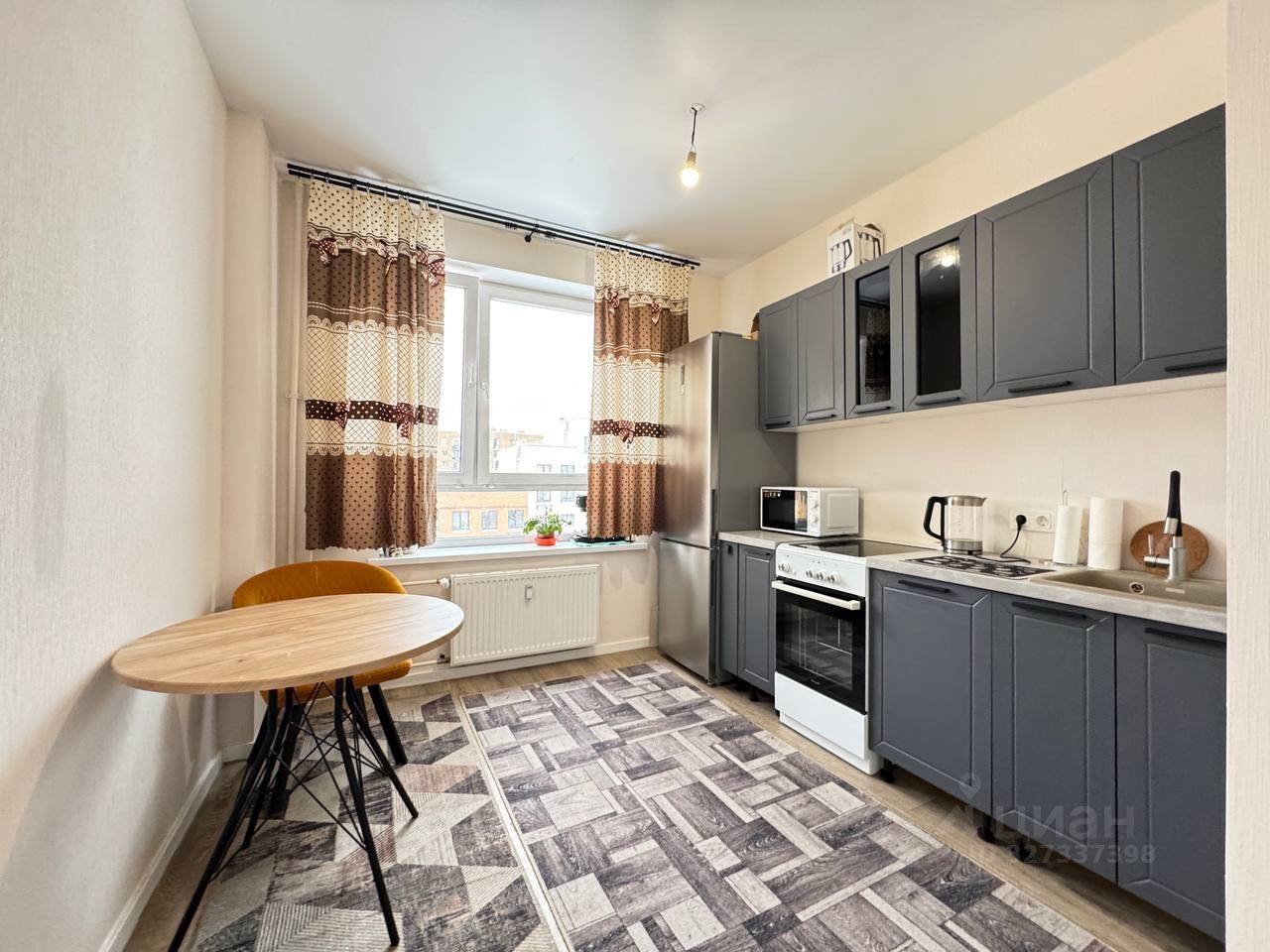 Квартира отличается функциональной евро-планировкой: просторная изолированная комната 16.8 м2, кухня-гостиная 8.7 м2, совмещенный санузел 4 м2 и прихожая 3.6 м2. Выполнен ремонт от застройщика, сделана частично меблировка. Продается с кухонным гарнитуром и техникой.