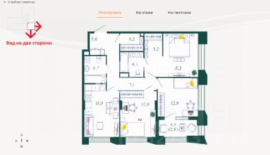 -Три отдельные спальни с площадью 15,3 м2, 12,9 м2 и 12,8 м2