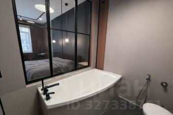 Современная отделка, тёмная сантехника, стеклянные перегородки. Удобно для семьи и гостей.