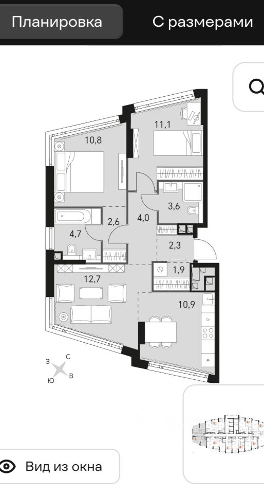 10,9 м²