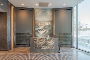 Стильное лобби с ресепшеном, камином и баром, консьерж-сервис 24/7