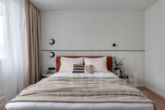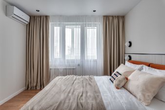 Удобная, функциональная планировка. В спальне кровать с ортопедическим матрасом и подъемным механизмом для доп хранения, большая гардеробная. Установлен мощный кондиционер.