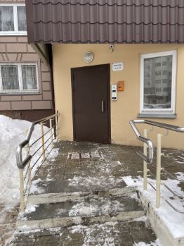 Окна выходят на две стороны: во двор и на улицу. В доме два лифта: пассажирский и грузовой. Холл на этаже на четыре квартиры, дополнительно закрывается