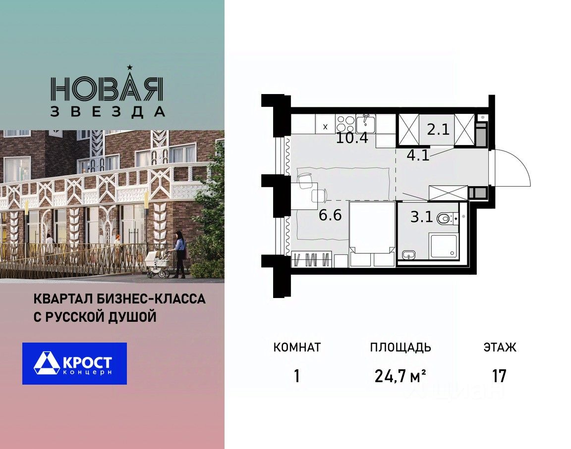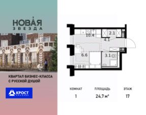 Продаётся 1-к квартира 24.7 кв.м. на 17-м этаже 22 этажного дома, корпус 6 - Резиденция "Хабаровск". Без отделки.