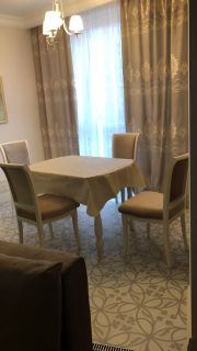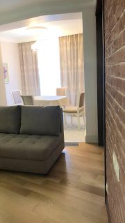В квартире выполнен дизайнерский ремонт с использованием высококачественных материалов. Просторная кухня площадью 20 кв. м станет настоящим сердцем дома, где можно устраивать семейные обеды и встречи с друзьями. Совмещенный санузел оформлен в современном стиле с вниманием к деталям. В квартире есть все необходимое для комфортной жизни — мебель и техника высокого класса.