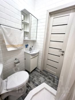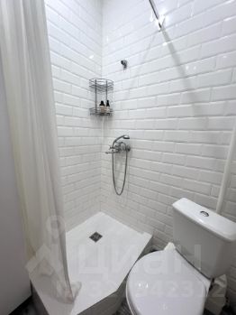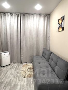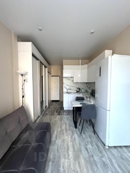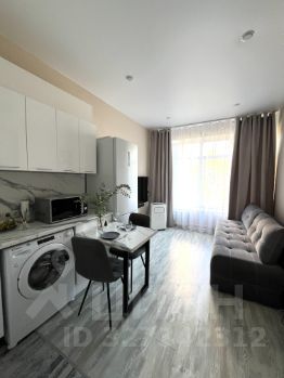 Студия оборудована раскладным диваном 205х140 (полноценный сон для двух взрослых людей). В кухонной зоне есть холодильник, стиральная машина, варочная панель, вытяжка, обеденный стол (также можно использовать как рабочий стол на удобной высоте), два мягких стула, шторы blackout. В коридоре расположены два больших вместительных шкафа-купе. В совмещенном санузле установлена качественная сантехника, душевая, унитаз, раковина, зеркало-шкаф, шкаф и тумба для хранения ванных принадлежностей. В апартаментах есть напольный кондиционер, готовы продать по договоренности.