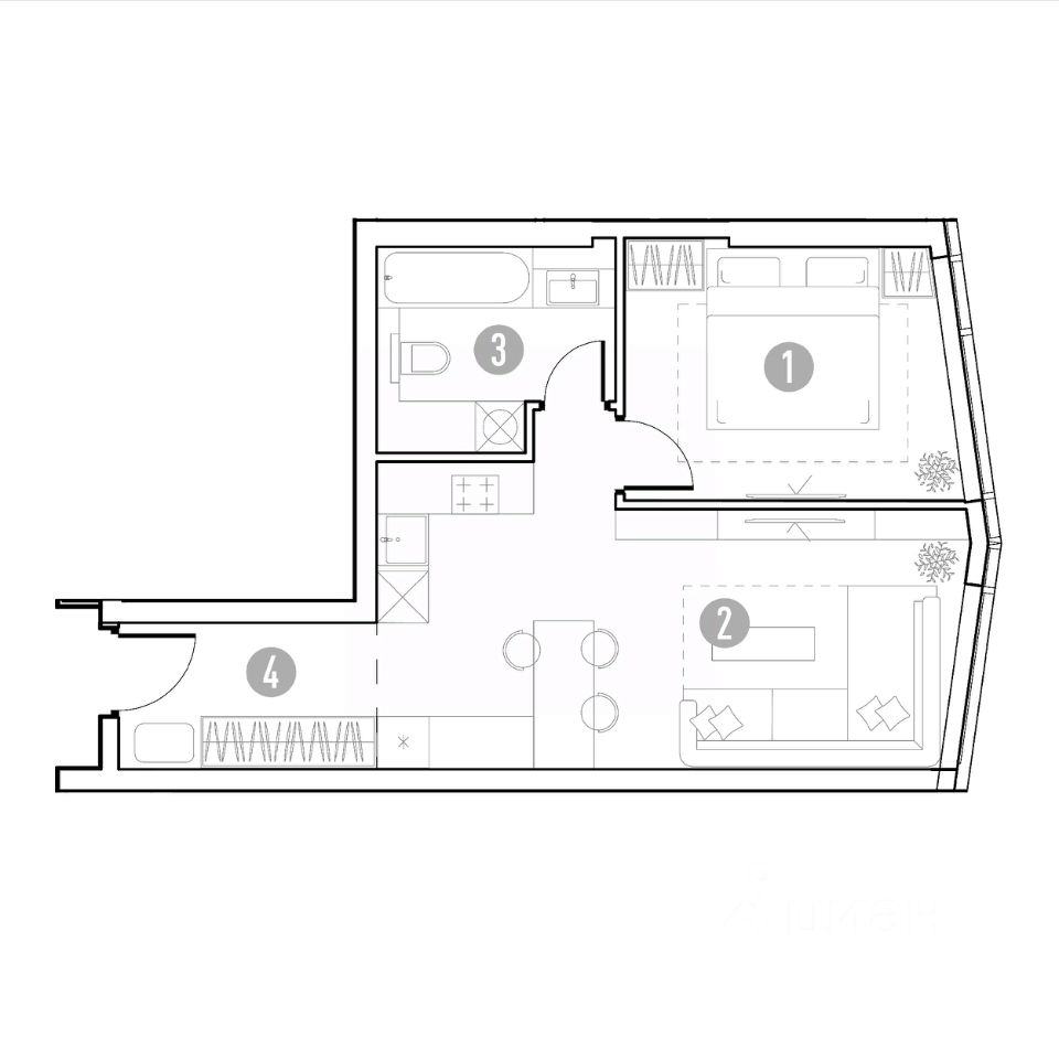 Продается 1-к квартира площадью 44.72 кв.м. на 2-м этаже 35 этажного дома в ЖК "УНО Горбунова" от ГК ОСНОВА. Старт продаж!