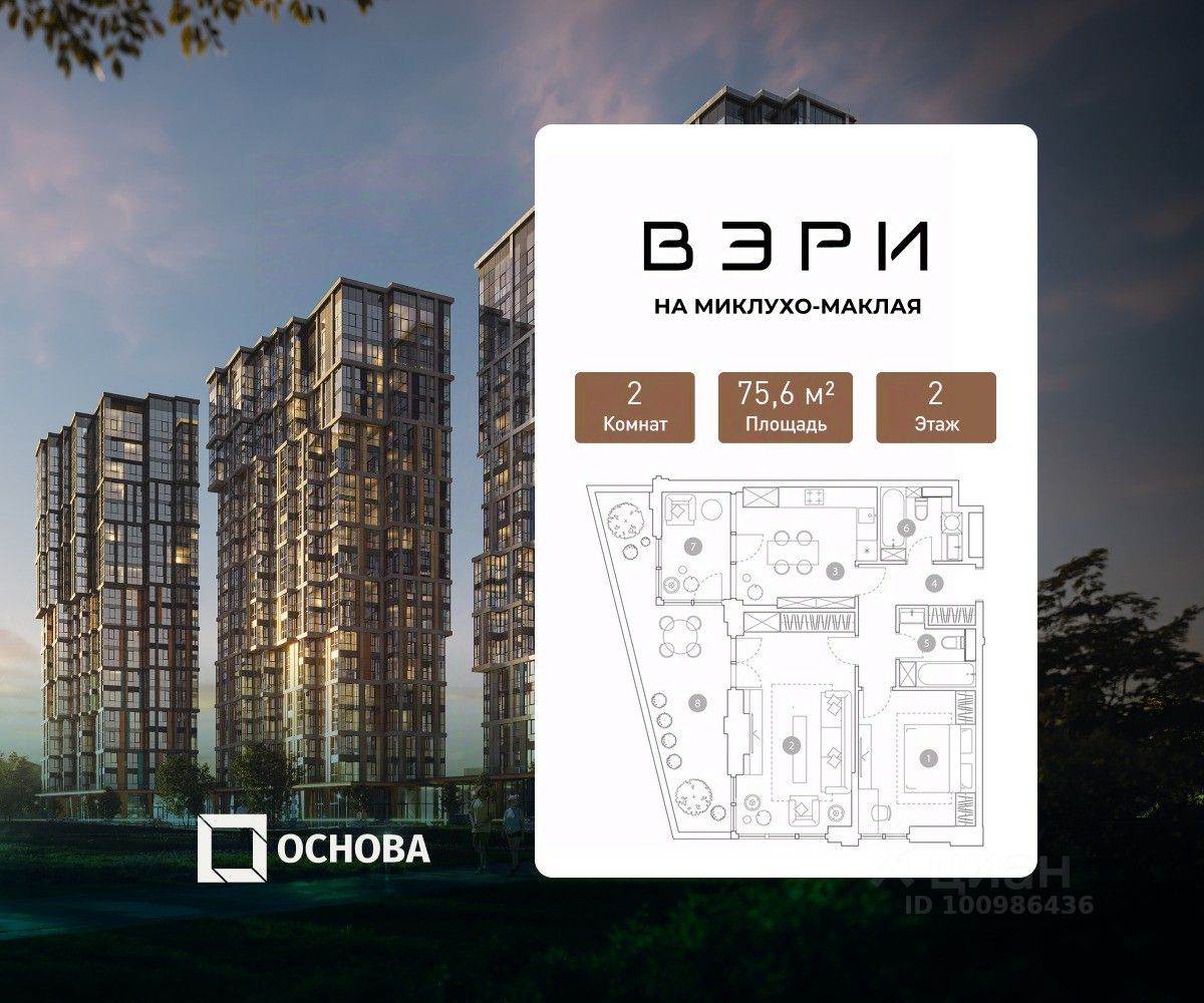 Продается 2-к квартира площадью 75.6 кв.м. на 2-м этаже