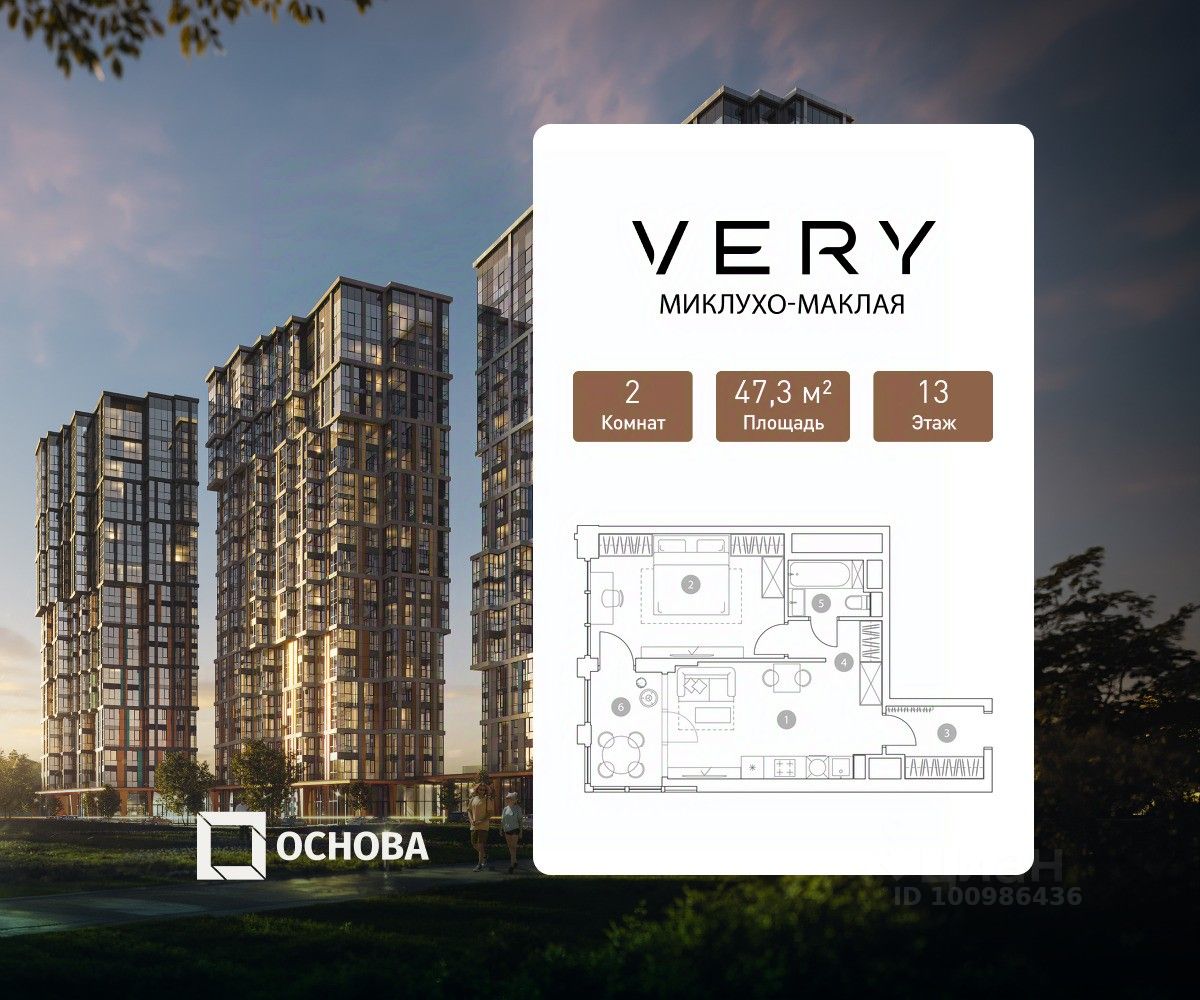 Продается 2-к квартира площадью 47.3 кв.м. на 13-м этаже