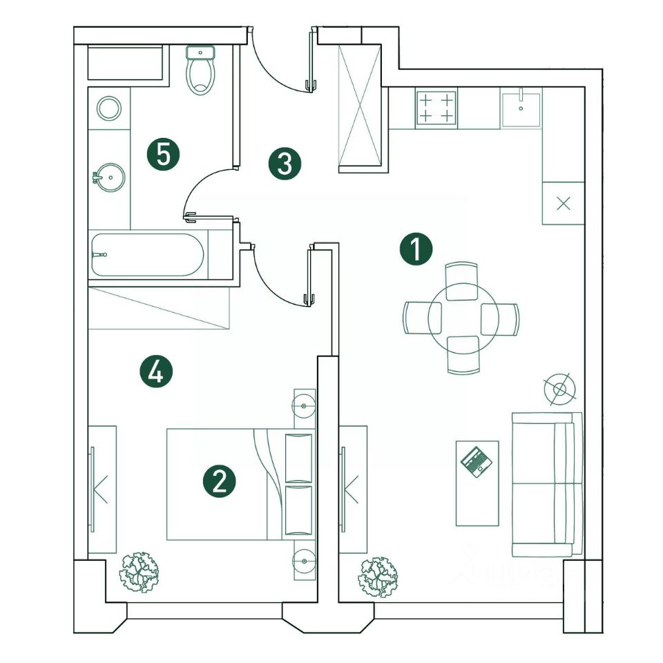 Продается 2-к квартира площадью 50.4 кв.м. на 5-м этаже 32 этажного дома в ЖК "ВЭРИ" от ГК ОСНОВА.