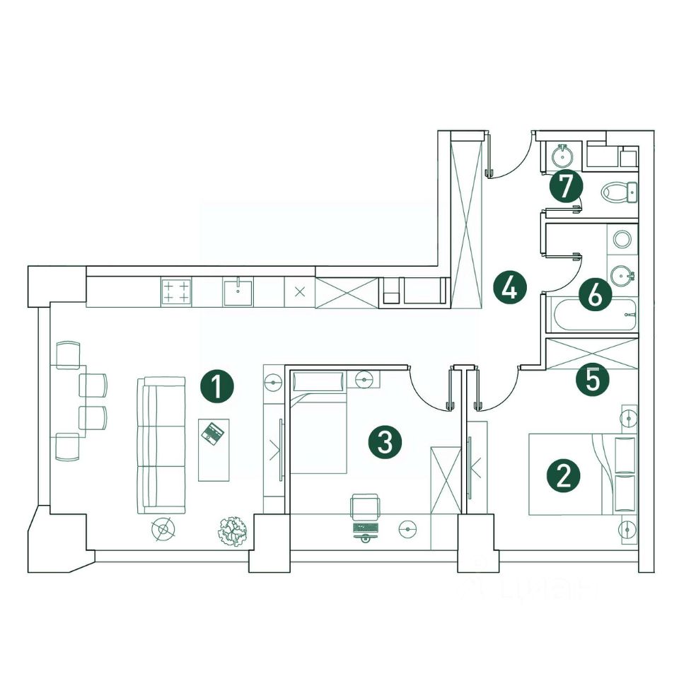Большой выбор эргономичных планировок. Собственный двор-парк 20 000 м² с фонтаном, детскими и игровыми площадками, воркаут-зоной, живописным парящим мостом, кафе и беседками для отдыха.