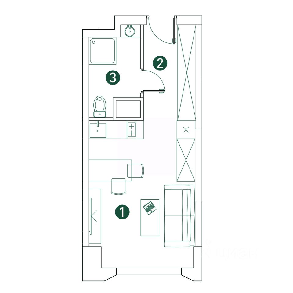 Продается студия площадью 26.6 кв.м. на 11-м этаже 29 этажного дома в ЖК "ВЭРИ" от ГК ОСНОВА.