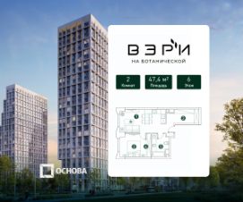 Продается 2-к квартира площадью 47.4 кв.м. на 6-м этаже 29 этажного дома в ЖК "ВЭРИ на Ботанической" от ГК ОСНОВА.