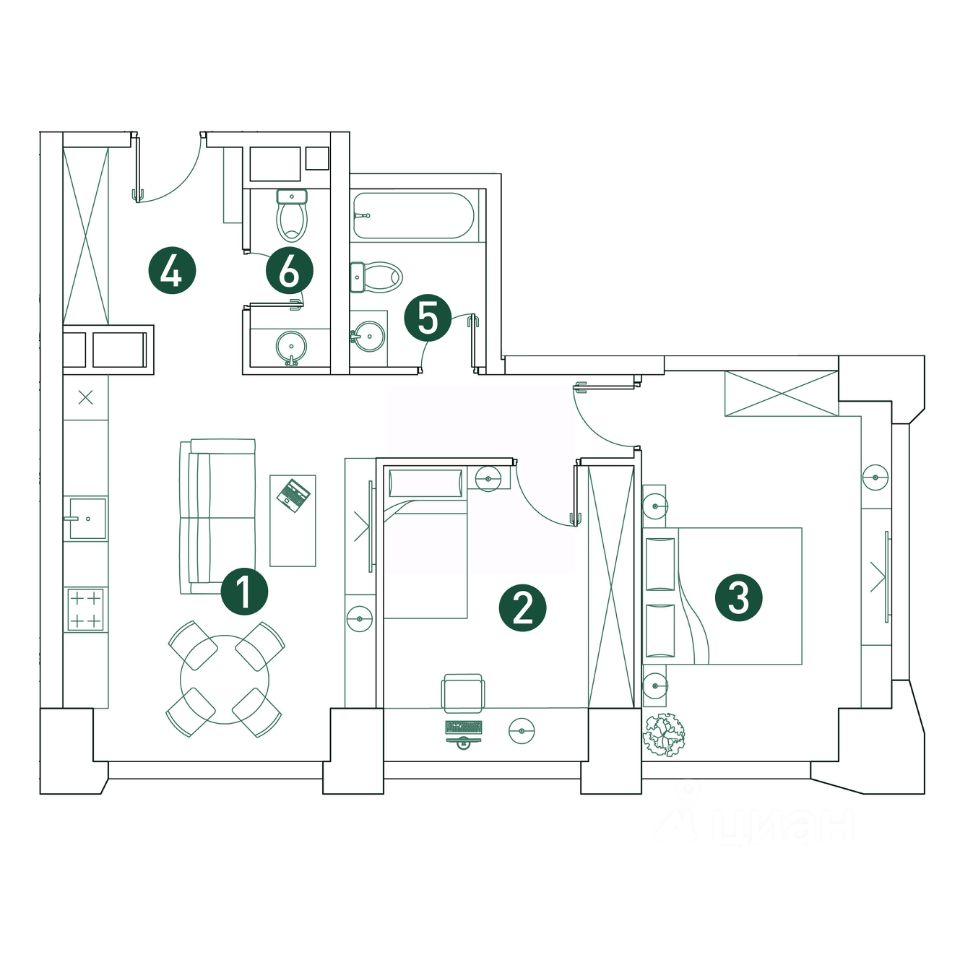 Большой выбор эргономичных планировок. Собственный двор-парк 20 000 м² с фонтаном, детскими и игровыми площадками, воркаут-зоной, живописным парящим мостом, кафе и беседками для отдыха.