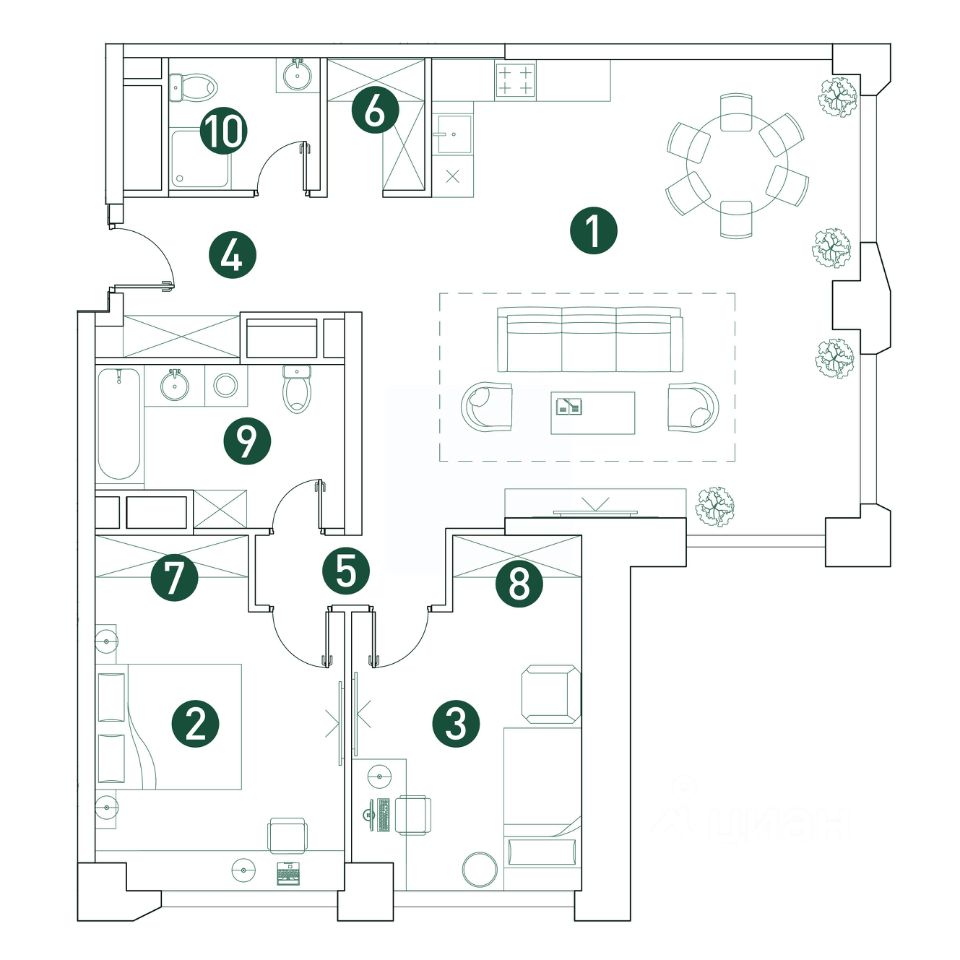 Большой выбор эргономичных планировок. Собственный двор-парк 20 000 м² с фонтаном, детскими и игровыми площадками, воркаут-зоной, живописным парящим мостом, кафе и беседками для отдыха.