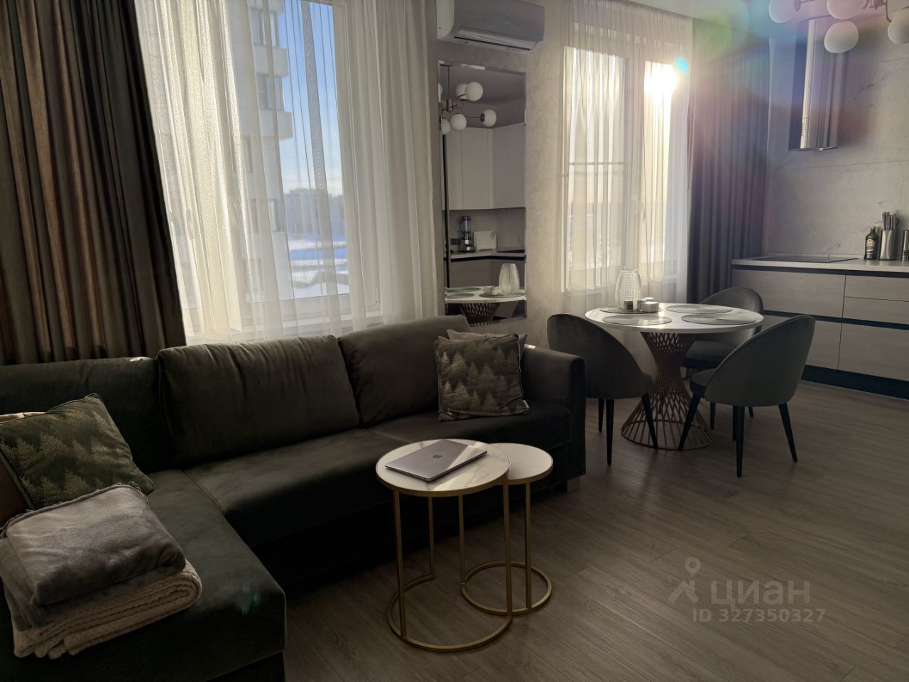 В квартире много света - в комнатах большие окна, частично выходят на солнечную сторону. Очень теплая зимой. Установлены кондиционеры в спальне и в кухне-гостиной.