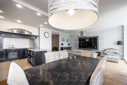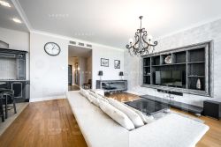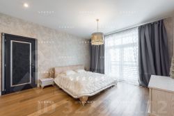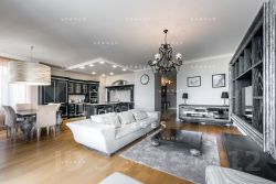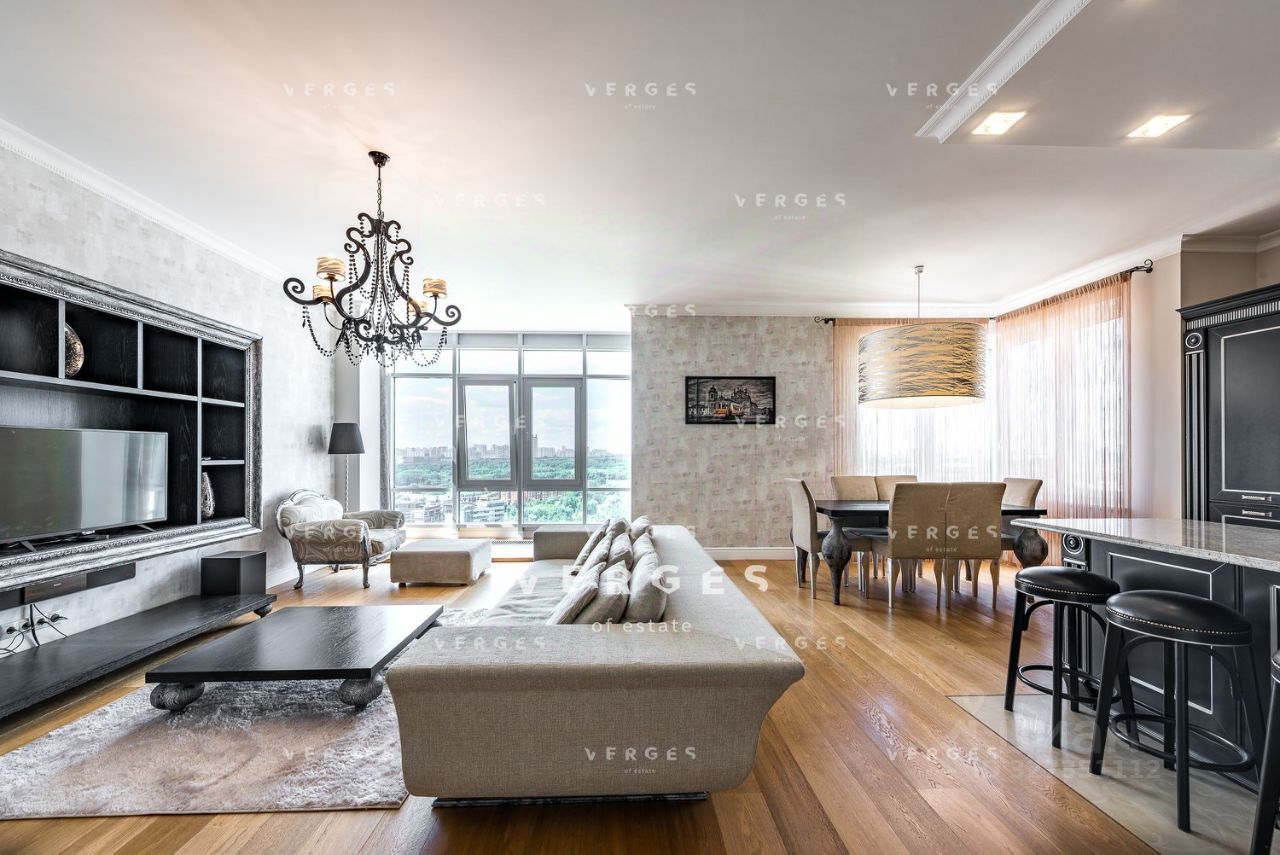 Элитная квартира с авторским ремонтом, видами на Мосфильмовский пруд и Парк Победы. Расположение в приватном корпусе 6, можно не выходя на улицу пройти в спа, аптеку или кафе, азбуку вкуса. Квартира полностью меблирована европейской мебелью. Роскошная отделка и экологичные натуральные материалы. Полы - паркетная доска из массива дуба. Планировка: просторная гостиная, объединенная с кухней, мастер спальня (21 м²) со своим санузлом (душ и ванна), гардеробной комнатой и балконом, детская спальня (27 м²) и третья спальня с двумя окнами (28 м²), рядом есть свой санузел (душ и ванна), гостевой санузел и постирочная расположены в прихожей. Кухня: итальянский кухонный гарнитур со всей необходимой встроенной профессиональной техникой Kuppersbusch. Два больших холодильника Liebherr c ледогенератором, винный шкаф. Итальянские двери. Сантехника и мебель в санузлах Villeroy & Boch. Смесители Jado. Канальная сплит-система кондиционирования и вентиляции Toshiba - высокоэффективная, тихая, распределяет воздух по всем комнатам, приточно-вытяжная вентиляция, тёплые полы во всех помещениях с плиткой (санузлы, кухня). В собственности удобные два машиноместа в подземном паркинге на -2 уровне (не включены в стоимость квартиры). Возможен показ по договоренности.