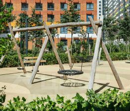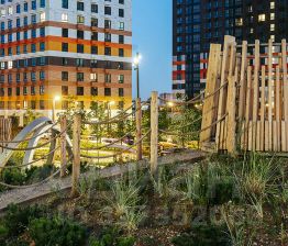 ЖК очень благоустроен, засажен деревьями, закрытые детские, зелёные дворы.