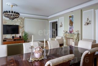 Пятикомнатная квартира на 34 этаже жилого комплекса "Воробьёвы горы" предлагает уникальные панорамные виды на озеро, парк и Москва-Сити. Пространство оформлено дизайнерским ремонтом в стиле американской классики с применением премиальных материалов: панорамные видовые окна дополнены широкими подоконниками из натурального камня.