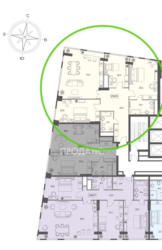 Планировка (реально делается): планировка позволяет создать 34 спальни, большую кухню-гостиную, 23 санузла, гардеробные/прачечную. под семью: 34 спальни, 23 с/у.