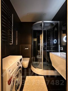 Квартира укомплектована мебелью и техникой, то есть можно покупать и сразу жить, а не заниматься археологией по магазинам. Встроенная кухня уже на месте, посудомойка, холодильник, стиральная машина, кондиционер тоже. В коридоре шкаф купе с зеркальными дверями, чтобы можно было одним взглядом понять, кто тут взрослый человек, а кто просто зашёл за кофе. Санузел стильный, с душевой кабиной.