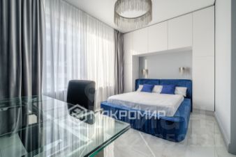 Предлагаем Вашему вниманию видовую ЕВРО-двухкомнатную квартиру в ЖК бизнес класса СИМВОЛ Расположена на 6 этаже с панорамным видом на собственный двор-парк Зеленая река - изюминку всего нашего комплекса. Год назад был сделан ремонт из дорогостоящих премиальных материалов, обладающих супер износостойкостью и простотой в уходе. Выполнена полная шумоизоляция. Квартира оснащена всей необходимой техникой и мебелью также премиальных брендов. Все остается новому владельцу. Дизайн разработан лично собственником при участии известного дизайнерского бюро. Общая площадь квартиры 74 метра. По функционалу - при входе большая гардеробная комната, что очень удобно, отдельная спальня 16 м, за зеркальной стеной спряталась шикарная совмещенная ванная комната , просторный холл, отдельная зона кухни 15 м. и огромная гостиная 40 м. - зона основного время провождения. Пространства и атмосферы хватает для встреч гостей, посиделок с друзьями или семьёй и важных переговоров. 5 панорамных окон и радиусное остекление наполняют нашу квартиру светом и уютом. Минимальное наличие стен и перегородок, а также использование стеклянных элементов и мрамора поддерживают простор и свободу помещения.
