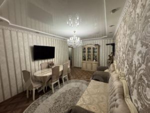 КВАРТИРА: Расположенная на 9 этаже, общая площадь 76.8 м2, жилая площадь 50 м2, (20 м2 , 16м2, 14м2), площадь кухни 12,5 м2 , высота потолков 3 м. , санузел раздельный, окна в две стороны, имеются две просторные и светлые лоджии.