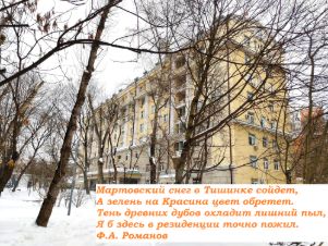 Устройте себе экскурсию в тихий центр Тишинки, Патриарших прудов, сосчитайте театры в пешей доступности, пройдите от Кремля, уделите минутку и просмотру квартиры.