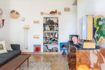 В квартире сделан дизайнерский ремонт: везде деревянные дубовые полы заново положенные с шумо изоляцией дополнительной, соседей не слышно и нас не слышат, квартира супер тихая, конструкция пола — металлические швеллеры, вся проводка заново сделана. Все коммуникации полностью новые, есть бойлер, скрытый в туалете.