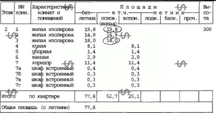 Площадь комнат