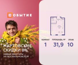 СОБЫТИЕ.6 — финальный дом парк-квартала СОБЫТИЕ на Мосфильмовской. Переезжайте в уже сформированный квартал с готовой инфраструктурой и парком! Премиальный жилой комплекс в престижном районе Москвы предлагает стильную архитектуру, продуманное благоустройство и великолепно разнообразие общественных пространств. Свой парк прямо возле дома!