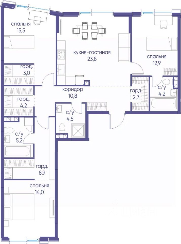 В продаже 3-к квартира от застройщика. Общая площадь 109.7, жилая 86, кухня 23.7. Квартира расположена на 2 этаже жилого квартала "Событие-6", корпус 2, Секция 4. Квартира без отделки. Срок сдачи: 4 кв. 2029 года.