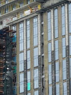 Объект расположен на 17 этаже 43-этажного монолитно-кирпичного здания с видом на внутреннюю территорию двора.