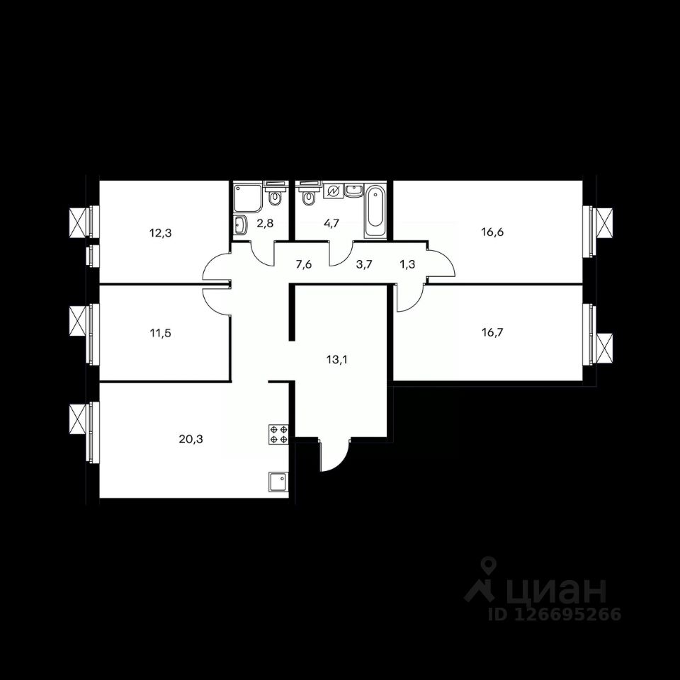 Общая площадь - 109.8 кв.м. Жилая площадь - 70.2 кв.м. Площадь кухни - 20.3 кв.м. Четыре изолированные комнаты. Квартира выполнена в косметическом ремонте, что позволяет вам легко обустроить пространство мебелью без лишних затрат. Два совмещенных санузла обеспечивают удобство для всей семьи. Дом 2020 года постройки, что гарантирует современную планировку. Из окон открывается вид во двор и на улицу, что создает атмосферу комфорта и спокойствия.