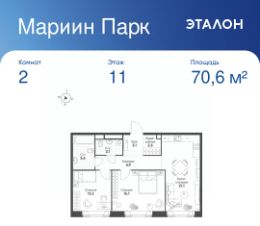 Общая площадь квартиры — 70.6 кв. м, этаж 11 из 16.