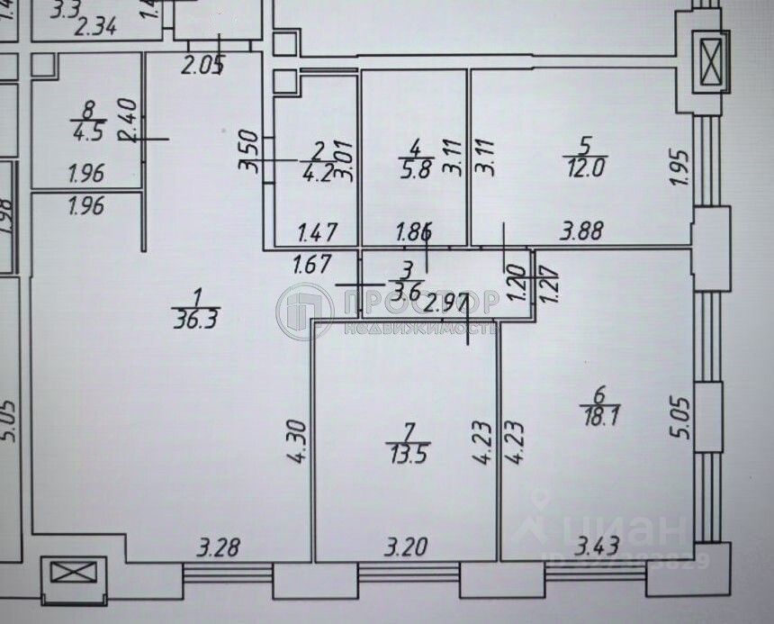 Три отдельные спальни (12 м2, 18,1 м2 и 13,5 м2) — личное пространство для отдыха, а просторная кухнягостиная (36,3 м2).