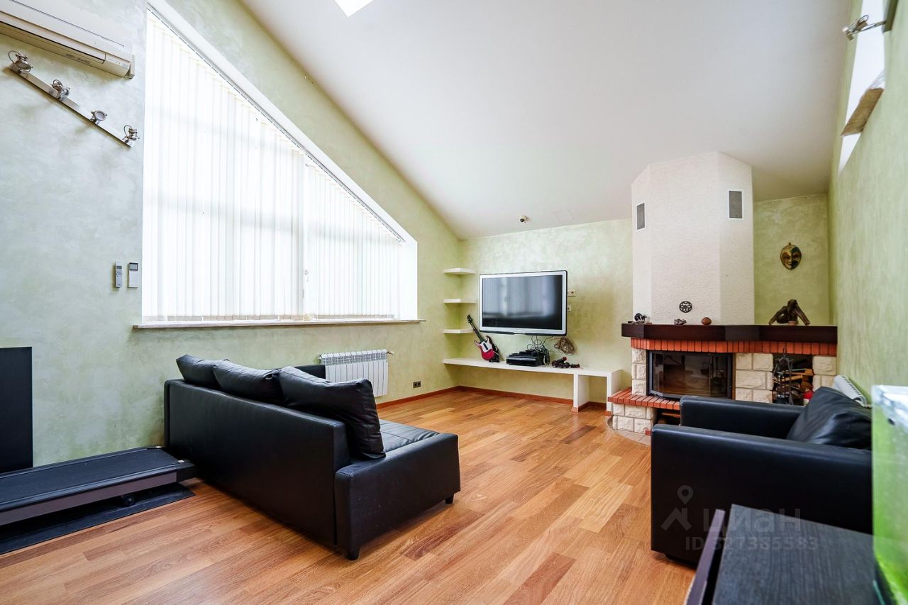 Гостиная с верхним светом (28,2 м²), камином, балконом и персональным выходом на крышу.