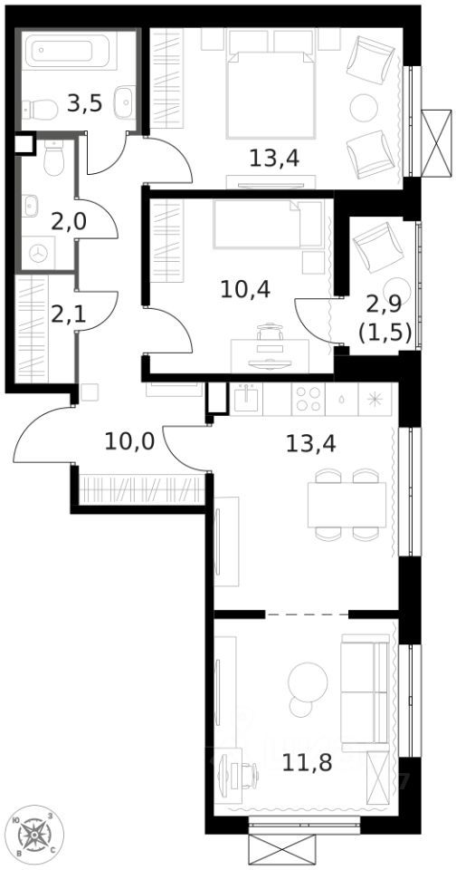 - Угловая планировка - больше пространства для ваших идей.