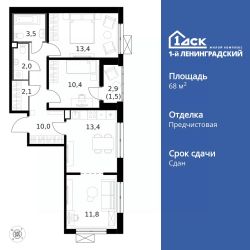 Продаётся 3-к квартира номер 215 общей площадью 68.3 кв.м. на 7-м этаже 14 этажного здания. Предчистовая отделка. Цена с учётом скидки.