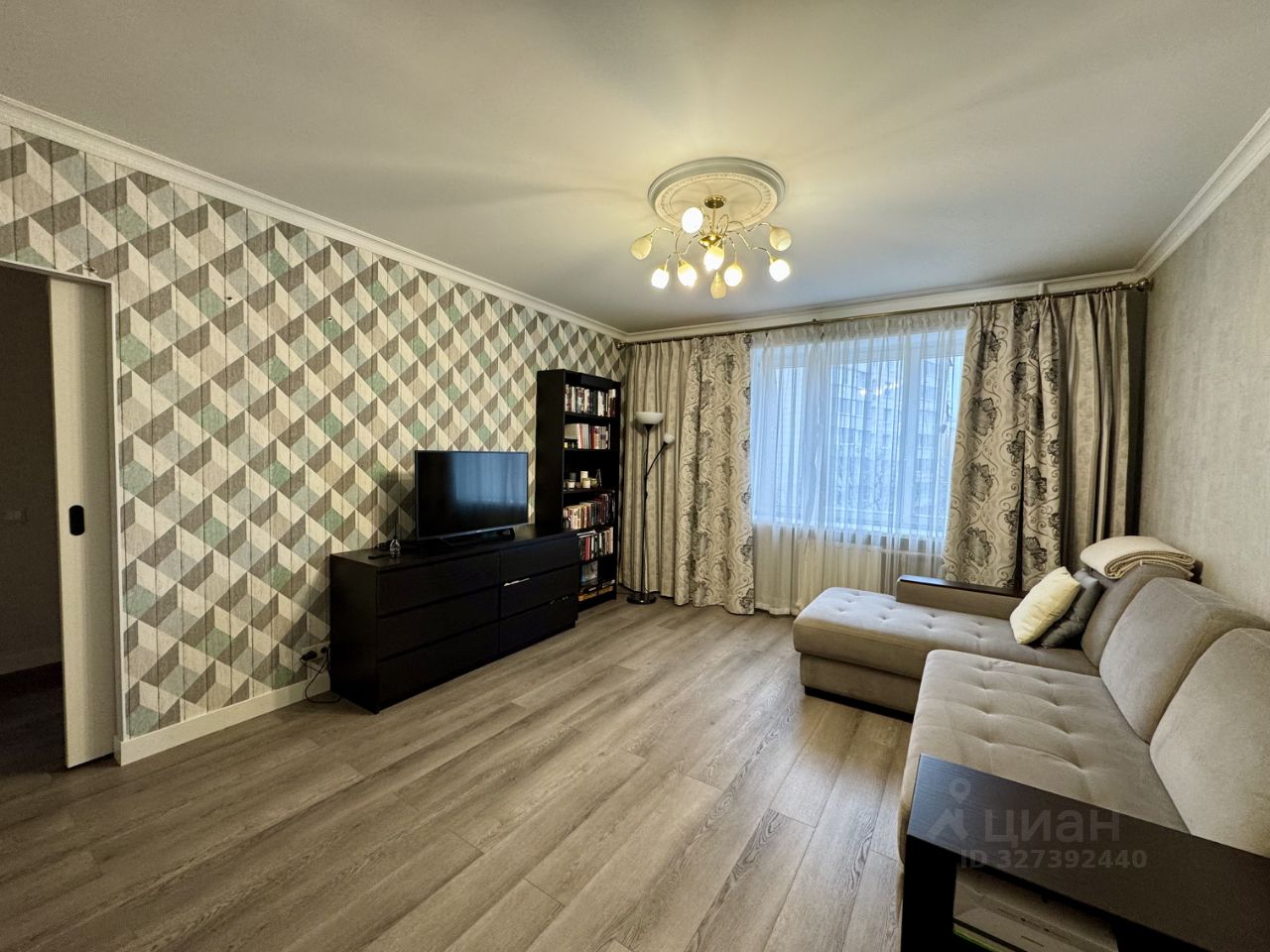 Квартира с удачной распашной планировкой: полноценная кухня со всей необходимой бытовой техникой, просторная гостиная с зоной ТВ и рабочей зоной, полноценная хозяйская спальня с двухместной кроватью и застекленной лоджией, небольшая гардеробная, прихожая, совмещенный санузел с ванной. Вся мебель остается новому собственнику.