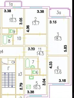 В квартире есть 4 отдельных санузла, два с ванной и два с туалетом