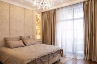 В мастер спальне кровать King Koil и итальянская ванная Oasis Aurelie Emperator Dark с мраморным топом. На полу натуральный мрамор и ореховое дерево.