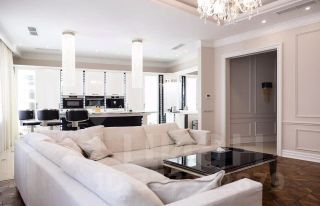 Квартира укомплектована премиальной техникой и мебелью, включая: посудомоечную машину Smeg, встроенную кофе-машину Bosch, варочную панель Gorenie, вытяжку Elica, подогрев полов, систему кондиционирования фирмы Mitsubishi