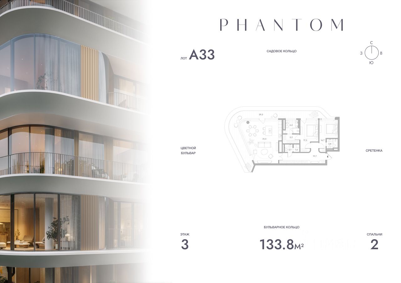 Представляем просторную 2-комнатную квартиру на 3 этаже Резиденций PHANTOM. Общая площадь лота составляет 133.8 кв.м. и включает мастер-спальню с собственной ванной, большую кухню-гостиную и гостевой санузел.